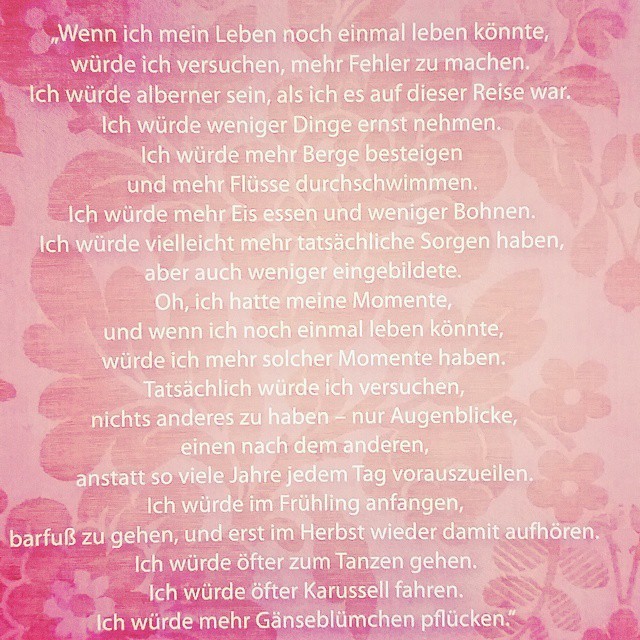 12. Oktober 2015 "Wenn ich mein Leben noch einmal leben könnte...." tagPlaceholderTags: Kommentar schreiben Kommentare: 0